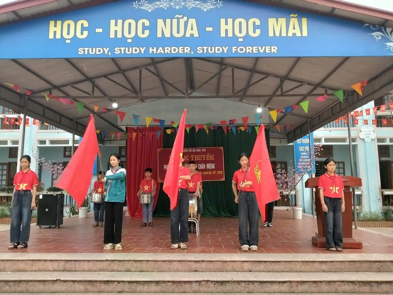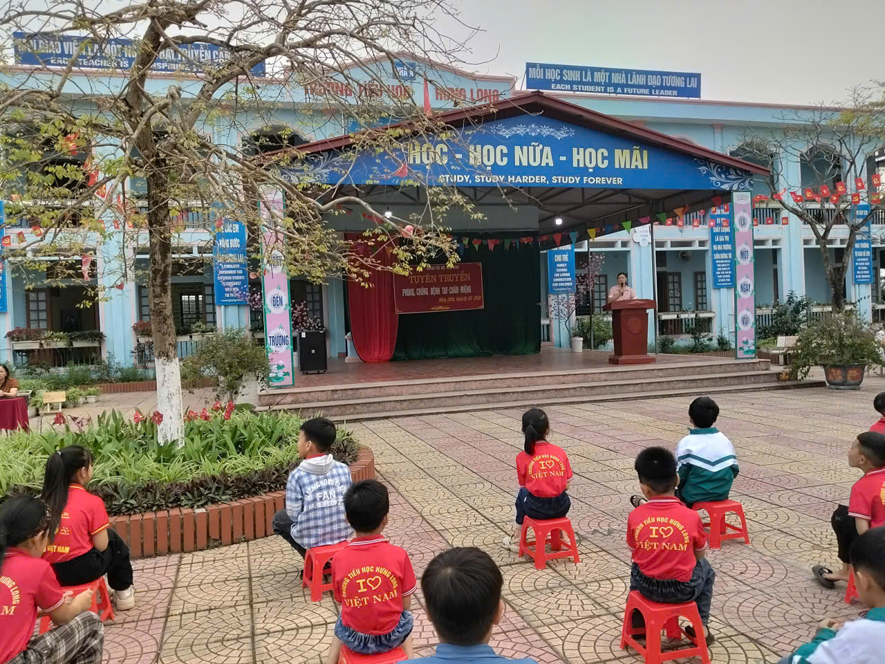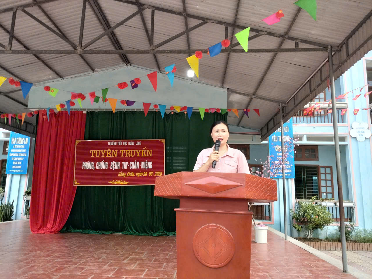Vào ngày 30/03/2026, bộ phận Y tế phối hợp với Liên đội trường Tiểu học Hưng Long đã tổ chức buổi tuyên truyền chuyên đề về phòng chống bệnh Tay - chân - miệng cho toàn thể cán bộ, giáo viên, nhân viên và học sinh. Đây là hoạt động thiết thực nhằm thực hiện kế hoạch truyền thông giáo dục sức khỏe năm học 2025-2026 và Công văn số 2836/SYT-KSBT của Sở Y tế thành phố Hải Phòng.